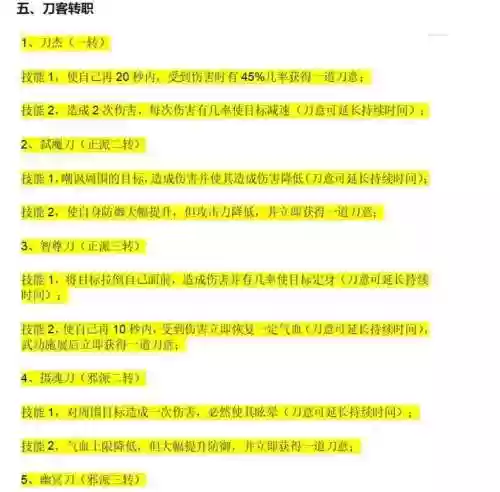 4、职业背景 刀客职业源自于热血江湖漫画的男主角韩飞官。职业特点 操作难度:一般,适合各种玩家尝试。 成长优势:高气血、高防御,这使得刀客在游戏中具有出色的生存能力。转职方向 一转:可转职为刀杰。 二转及三转: 正派:偏向坦克肉盾类型,能够在战斗中为队友提供坚实的保护。